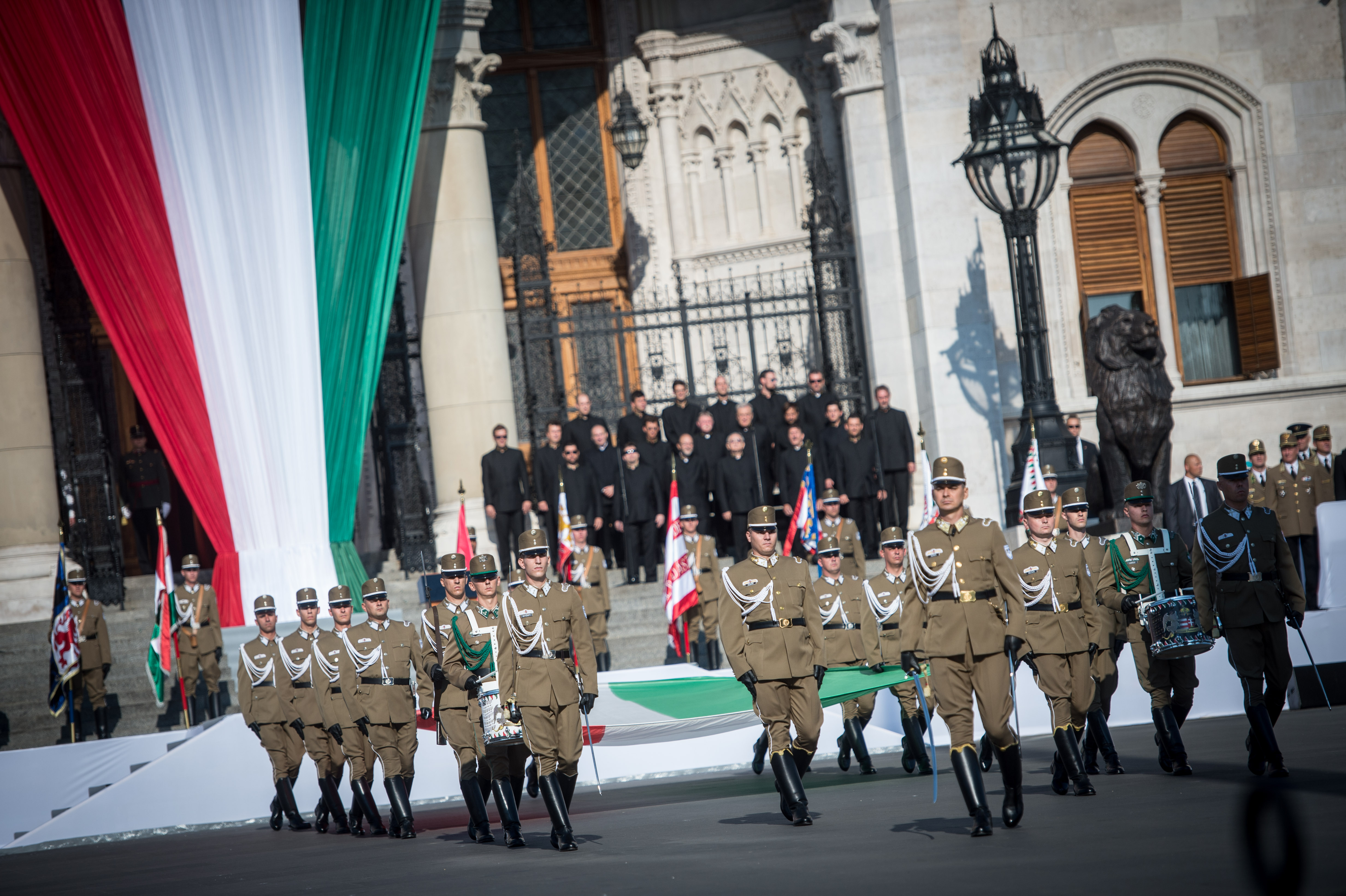 The flag was raised in the presence of President of the Republic János Áder, as the Ceremonial Guards of the Hungarian Defence Forces played the National Anthem. The Central Military Orchestra and the National Ceremonial Cavalry Unit were also present at the event.